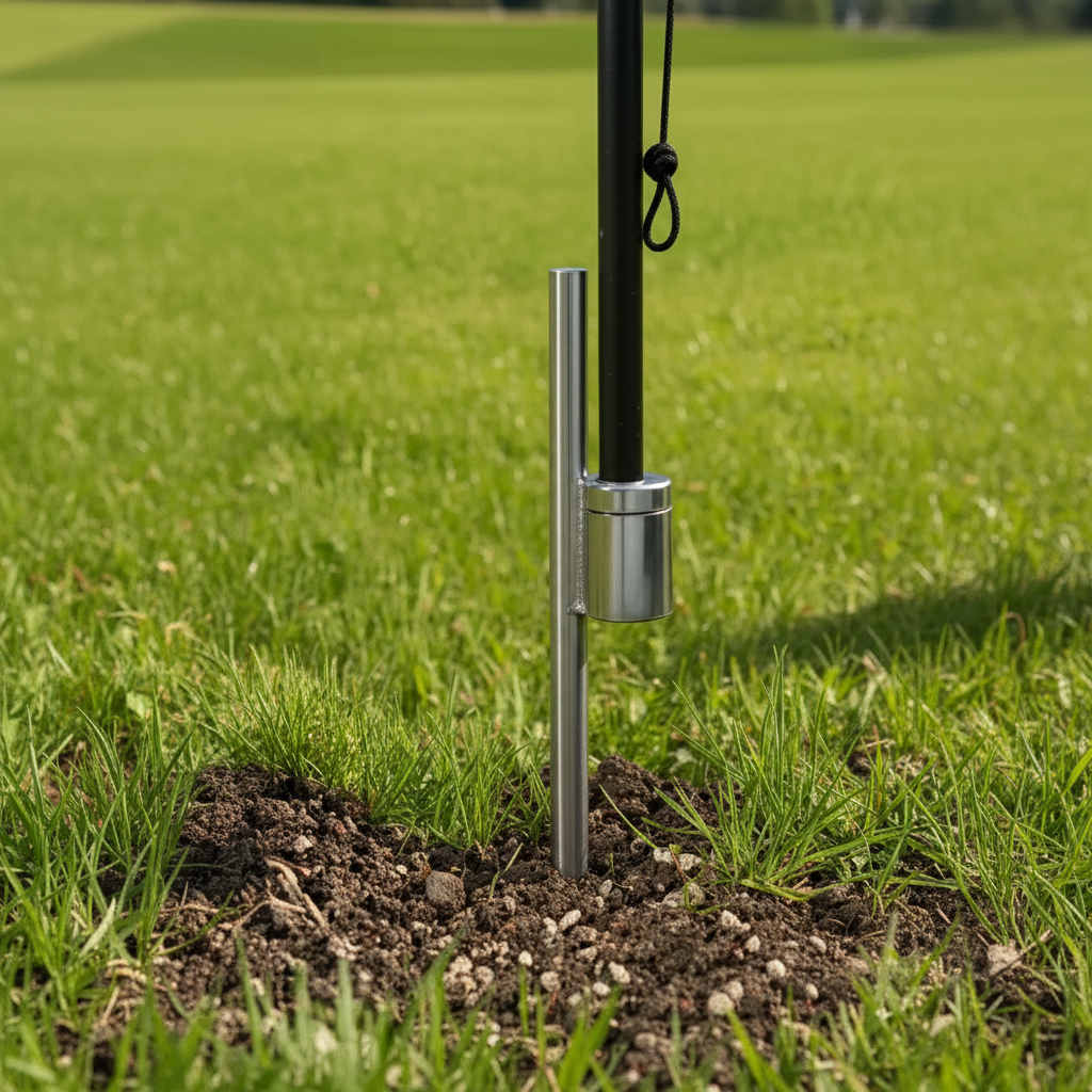Für feste Böden wie Erde, Lehm oder Kies ist dieser solide Stahlbodenspieß bestens geeignet. Die polierte Oberfläche sorgt für optimalen Halt und leichtes Drehen der Beachflag im Wind.
