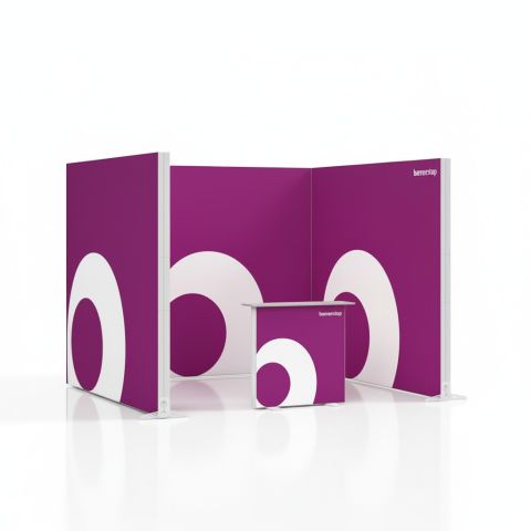 Die benötigte Standgröße richtet sich nach der gebuchten Standfläche und der gewünschten Präsentationsform. Für Eckstände eignen sich L-förmige Konfigurationen, für Kopfstände U-förmige Aufbauten. Unsere Beratung hilft Ihnen bei Bedarf, die passende Konfiguration für Ihren Messeplatz zu finden.